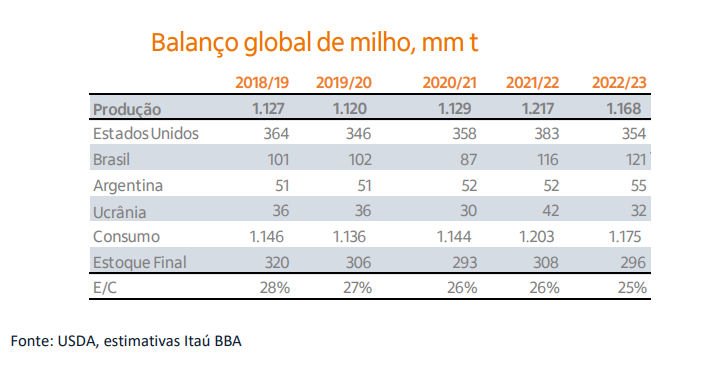 Quanto aos preços no Brasil, a expectativa do banco é de que possa voltar a descolar da paridade de exportação no curto prazo já que ainda há bastante produto a ser comercializado antes da chegada da safra de verão.