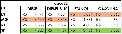 A Região Sudeste fechou a primeira quinzena de agosto com o preço médio de todos os combustíveis abaixo da média nacional. A gasolina na região foi comercializada a R$ 5,72, valor 7,51% mais barato em relação a julho.