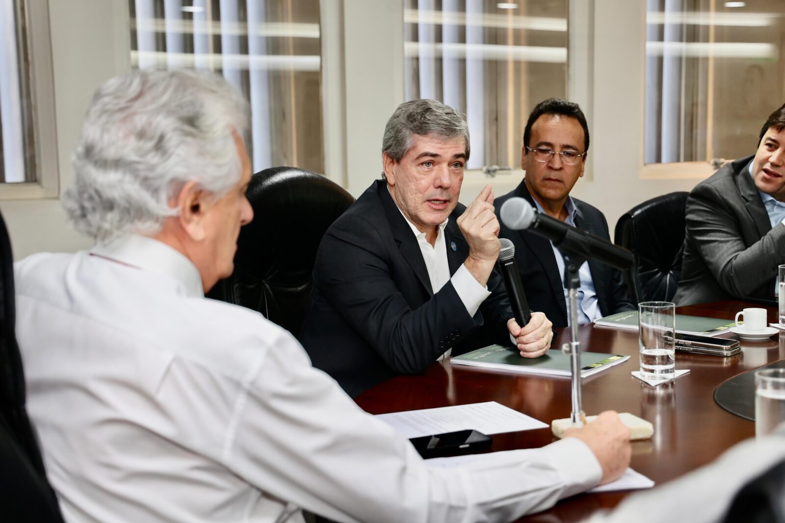 O presidente executivo do Sifaeg/Sifaçúcar e da FIEG, André Rocha, e o presidente do Conselho Administrativo dos dois sindicatos, Marcelo Barbosa, reuniram-se com o governador Ronaldo Caiado na manhã desta quinta-feira (23) para tratar das novas tarifas impostas pelos Estados Unidos sobre produtos brasileiros, especialmente o açúcar e o etanol.